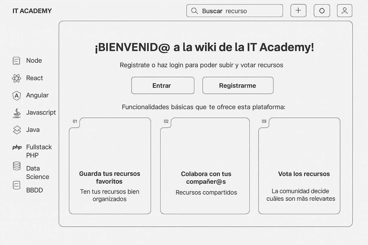 It Academy students → Programming students at IT Academy who need a centralized place to access reliable learning resources. Their goals are to save time searching, keep track of materials, and collaborate with peers.
